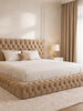 Ambassador Bed is a statement upholstered bed frame with a tall deep-buttoned headboard and matching padded frame. Its soft, tufted finish gives the bed a luxury look while keeping the design warm and timeless for modern and classic bedrooms.